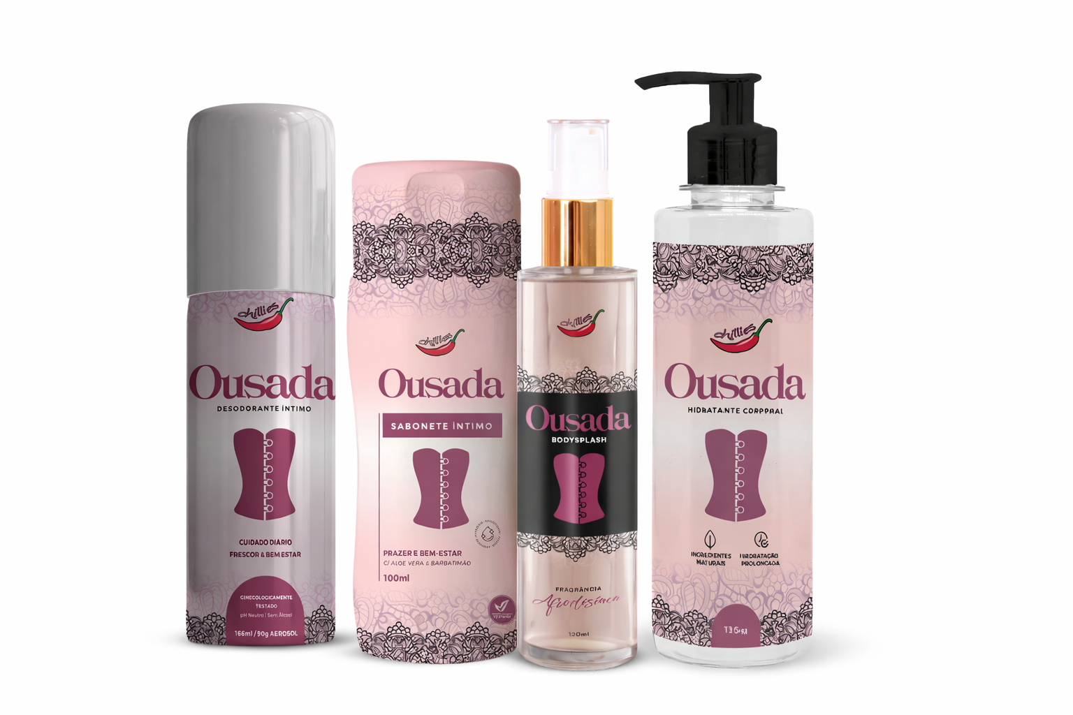 O Kit Ousada 4 Itens foi desenvolvido para proporcionar uma rotina completa de autocuidado, hidratação e perfumação, reunindo produtos essenciais para os cuidados diários com a pele e bem-estar pessoal.